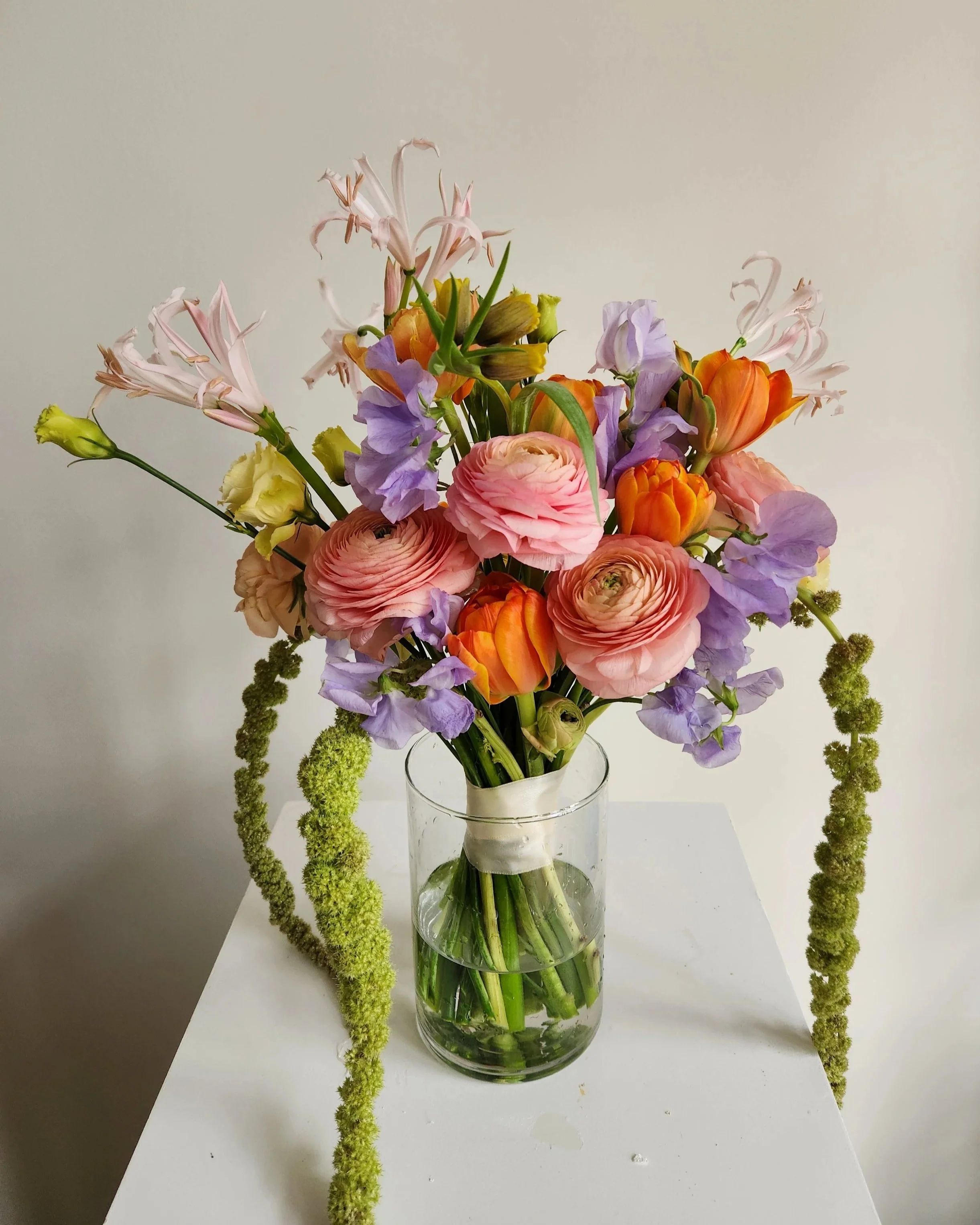 We craft each arrangement with care, using seasonal blooms and thoughtful details inspired by nature. Whether you're drawn to something timeless and elegant or prefer a bouquet that's wild and whimsical, we bring your floral vision to life. From lush, garden-style wedding bouquets to full-scale floral installations, our designs are infused with artistry, emotion, and elegance in every petal.